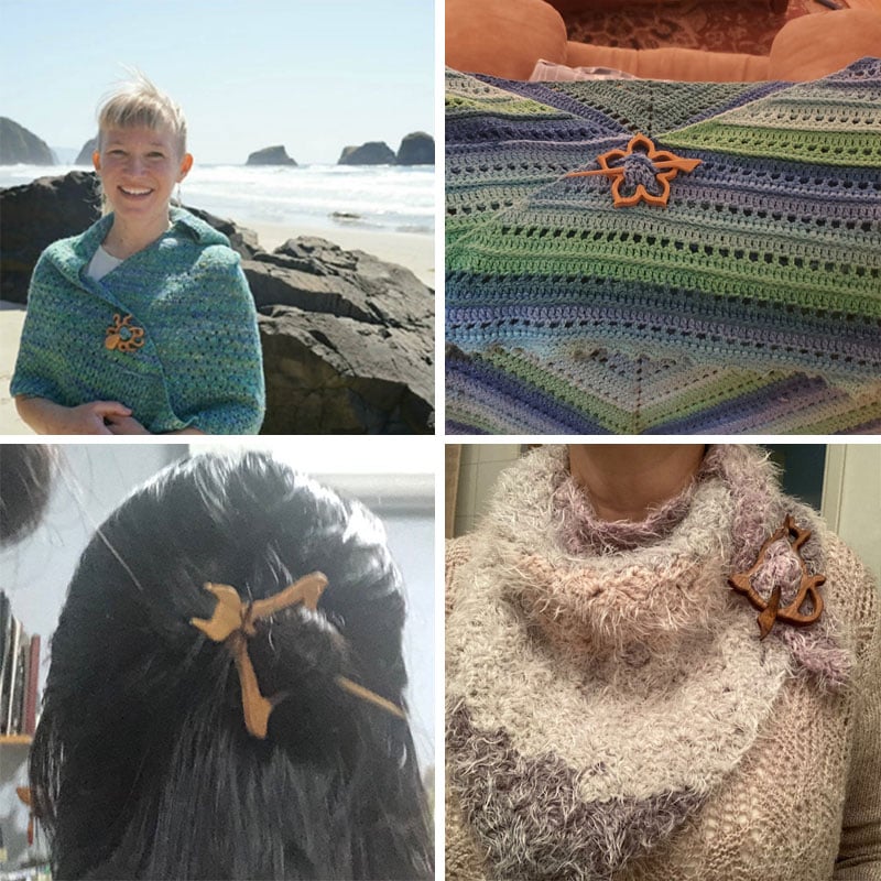It is comfortable to wear, hard but very light, so it won't weigh down your shawls, scarves, sweaters or pullovers.
